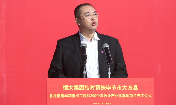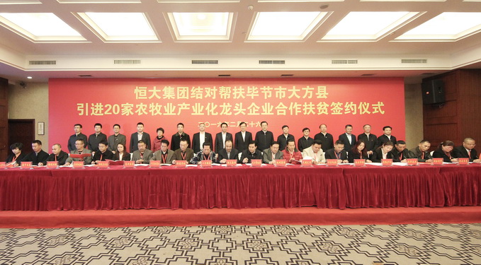 在全国政协的领导下,2月27日,恒大集团结对帮扶大方县首批援建工程项目开工仪式在毕节市大方县举行,40项重点工程和200个农牧业产业化基地项目同时正式开工。