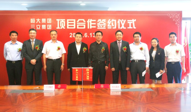 6月13日,恒大集团董事局主席许家印在恒大中心会见了来访的三立集团董事长郁国祥一行,双方就进一步加强沟通、深化合作进行了亲切友好的交流,并签署了项目合作协议。恒大集团副总裁刘永灼,三立集团董事徐征、总裁许晓明等出席了项目合作签约仪式。恒大集团副总裁刘永灼与三立集团总裁许晓明分别代表双方签约。